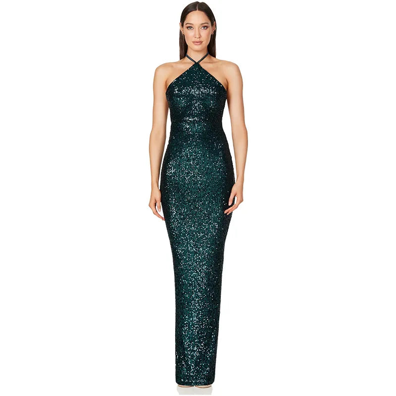 Lower Split Elegant Dress Women For Wedding Party Cocktail Prom Dress Sequin Neck Hanging Sexy Long Formal Evening Dresses Hxy9
