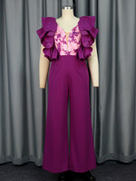 Plus Size 4XL For Women Ruffle Edge V-neck Printed Sleeveless Wide Leg Elegant Jumpsuit Formal Evening Celebrate Birthday Romper