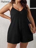 Plus Size Summer Sleeveless Slip Jumpsuit Women V-Neck Fashion Sexy Ladies Jumpsuits Wide Leg Loose Woman Mini Jumpsuit