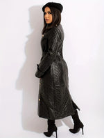 Plus Size Women's Trench Coats Autumn Spring Black Streetwear Leather Jackets Elegant Office Lady Slim Warm Long Coat With Belt