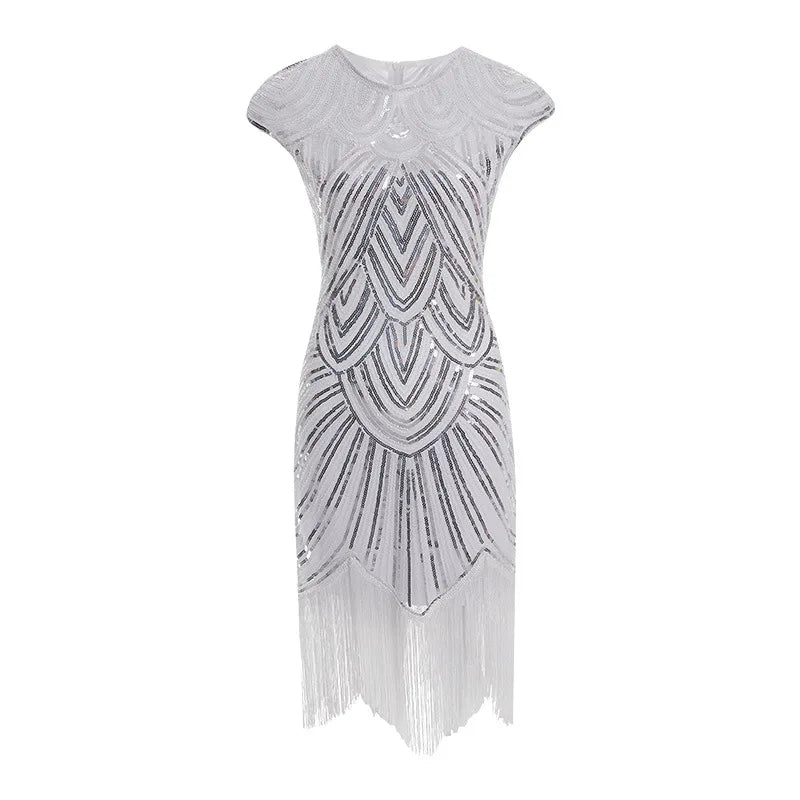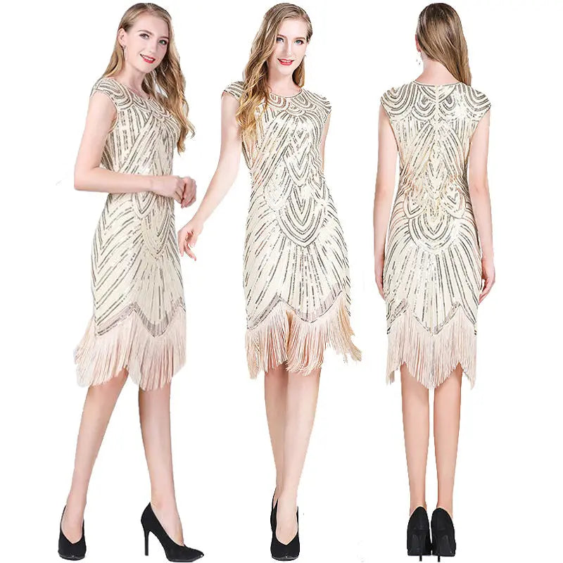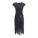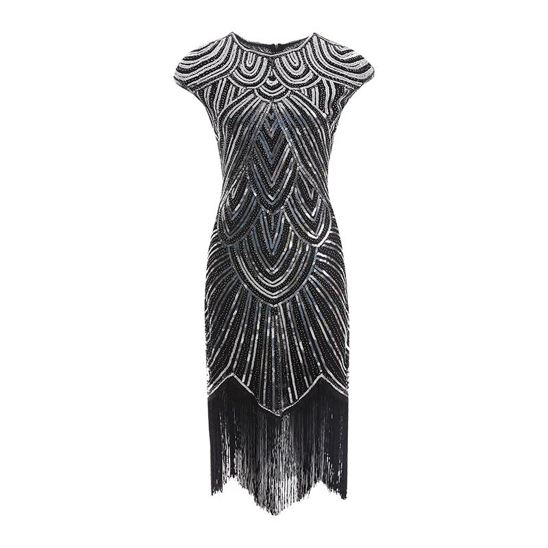- Vintage Glitter Evening Party Dress For Women Sequin Bead Embroidery Tassel Prom Gown Gala Dress Summer Art Deco Retro Black
